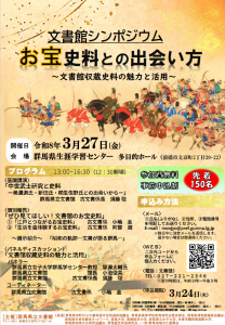 2026年3月27日(金)に、群馬県立文書館主催の収蔵史料を題材としたシンポジウムが開催されます。